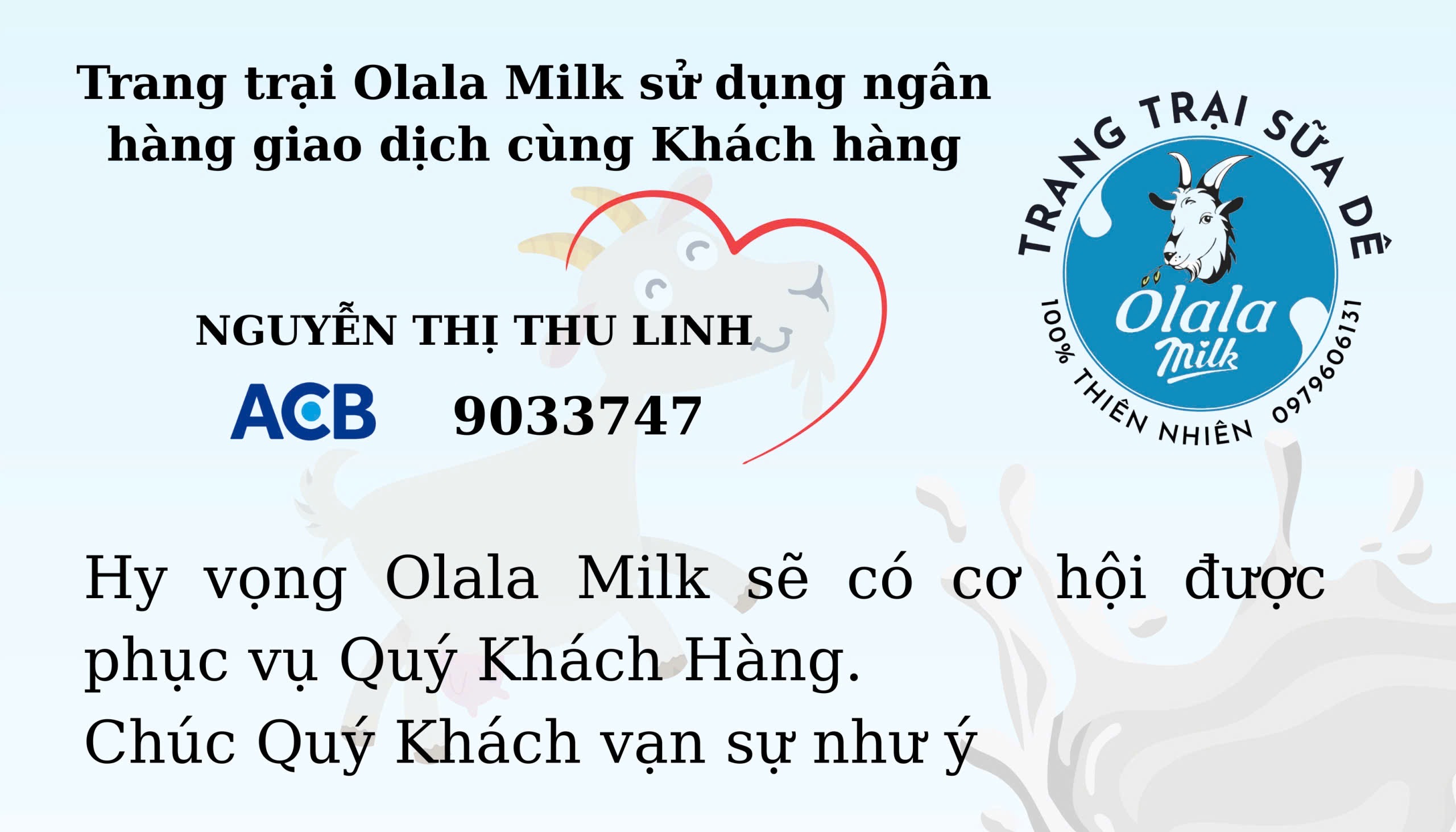Trang Trại Olala Milk sử dụng ngân hàng giao dịch cùng khách :